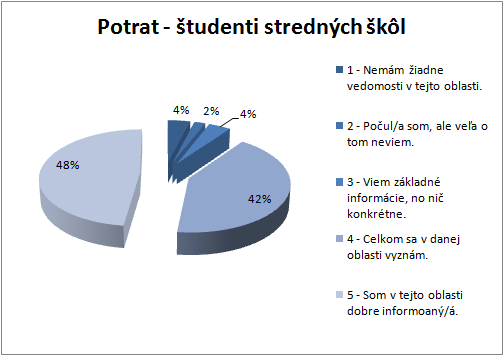 4% študentov stredných škôl označilo rozsah svojich vedomostí o potrate číslom 1; 2% študentov číslom 2; 4% číslom 3; 42% číslom 4 a 48% študentov si myslí, že sú o potrate dobre informovaní a v otázke označili číslo 5. (Príloha A, Graf 11).